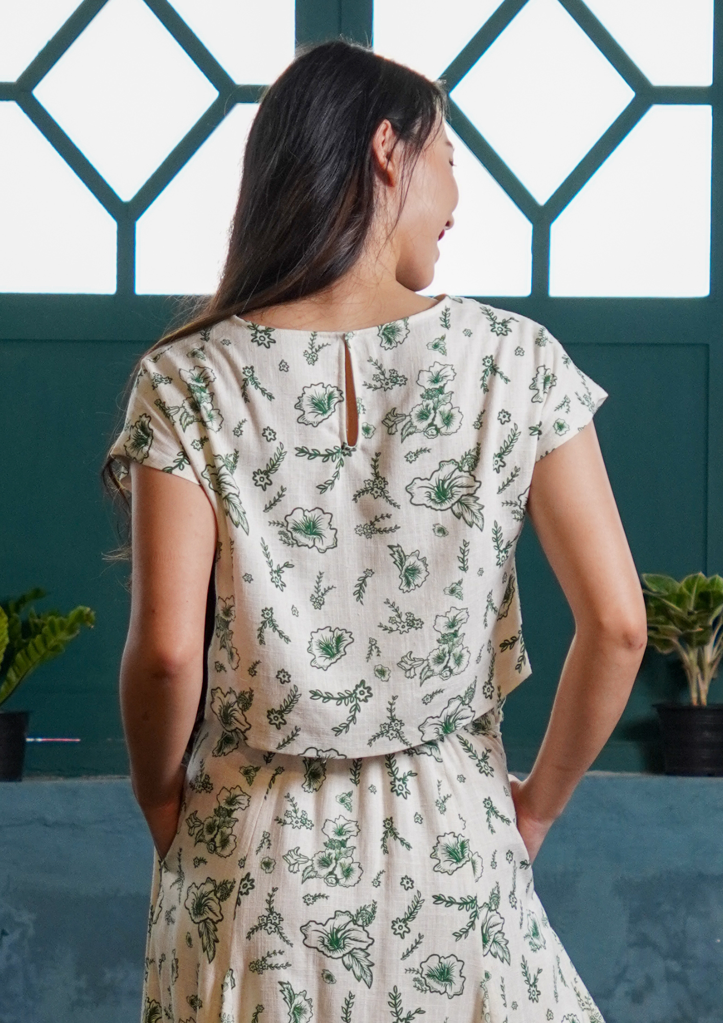 The Elise Top is a cropped, boxy-cut piece designed for both comfort and effortless style. Featuring a back button closure at the neckline, it's easy to slip on while maintaining a clean, structured silhouette.
