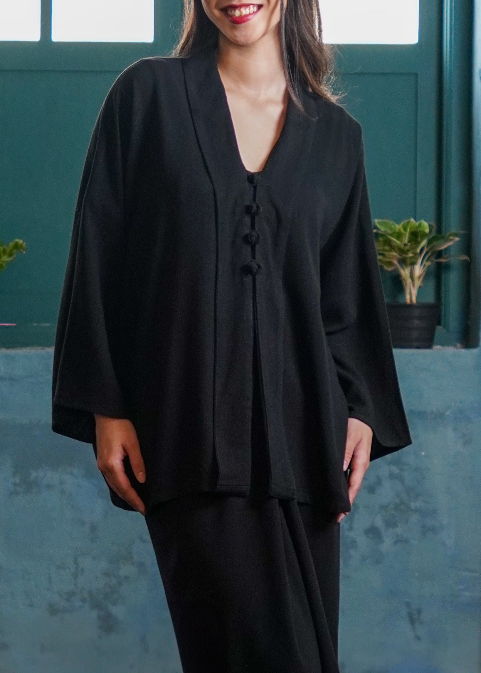 Introducing our Kimono Top an oversized piece that brings together traditional charm and everyday ease. Featuring our signature Chinese buttons, this top can be styled in multiple ways: wear it as a statement outerwear layer or button it up as a standalone piece.