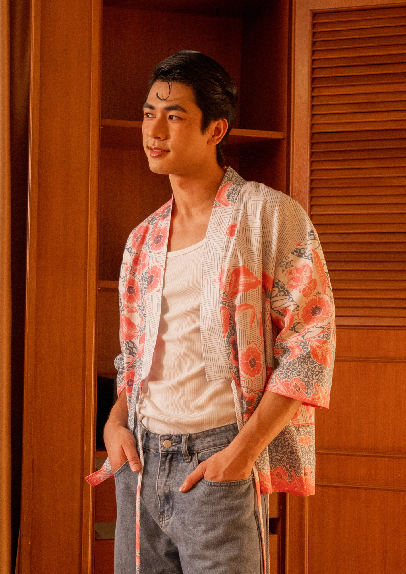 A modern take on a classic silhouette, the Ash Kimono blends traditional inspiration with effortless, everyday wearability. Featuring a relaxed open-front design and soft kimono sleeves, this piece is finished with an adjustable tie closure for versatile styling. The intricate floral print adds depth and character, making it an easy statement layer for both casual and elevated looks.