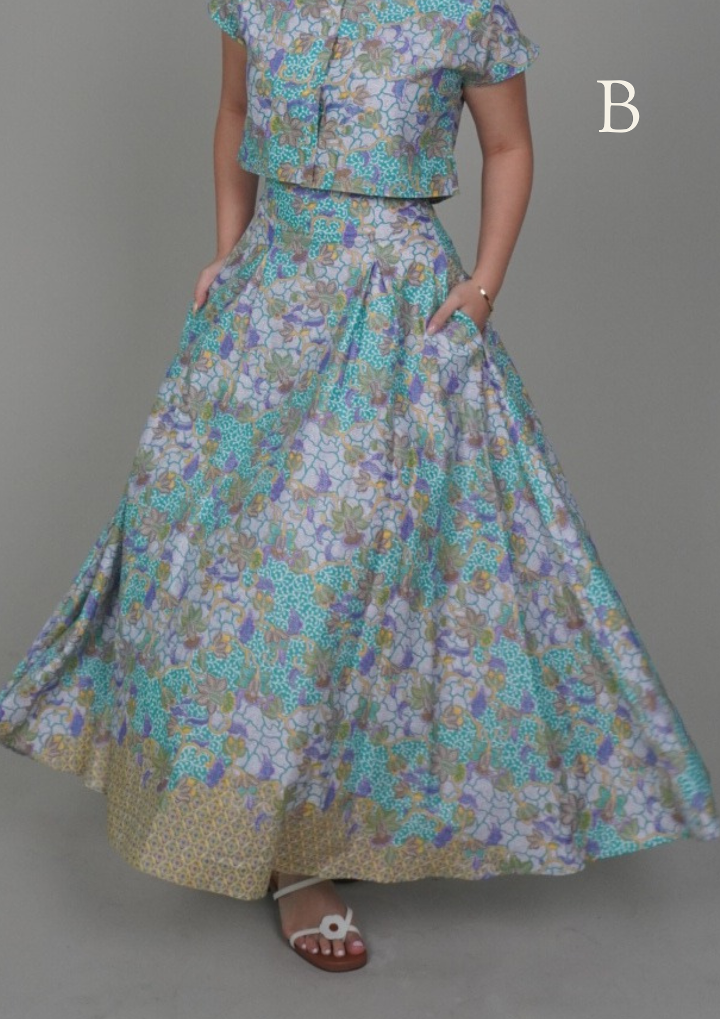Effortlessly feminine and versatile, features a high-waisted A-line silhouette with a soft, flowing drape. Designed with functional side pockets and a hidden back zipper, it offers both style and practicality perfect for everyday wear or dressing up for special occasions.