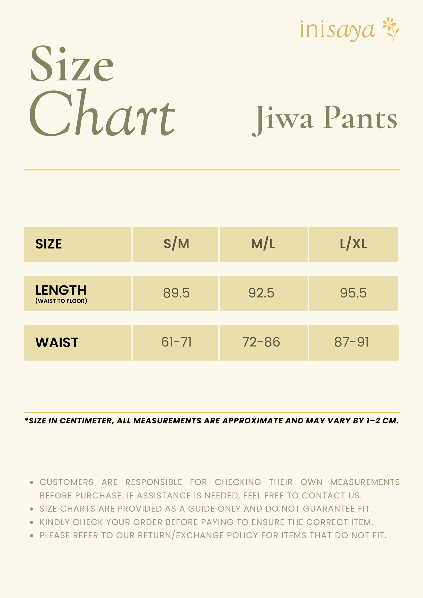 Designed in 100% cotton fabrics with 100% cotton lining, flattering high-waisted cut and an elasticated back for all-day comfort, the Jiwa Pants feature a fluid, flowy silhouette that drapes beautifully. Thoughtful details like functional pockets, open side slits, and delicate rose buttons add a soft statement perfect for elevating everyday looks with ease.