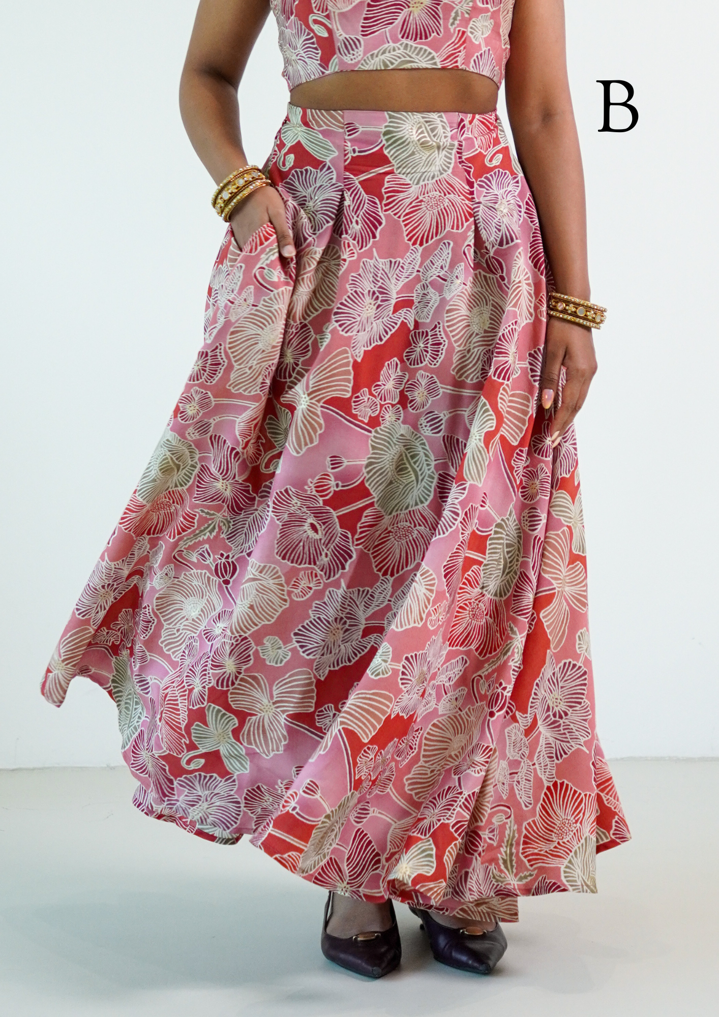 The Emily Skirt is a timeless A-line silhouette redefined for elegance and ease. With its wide, flowy cut, this high-waist skirt moves gracefully with every step, offering both comfort and sophistication. Designed with practicality in mind, it comes complete with side pockets, a back waistband, and a secure zipper for the perfect fit. Crafted from breathable fabric and available in two unique prints, the Emily Skirt is a versatile piece that transitions seamlessly from festive celebrations to everyday wear.