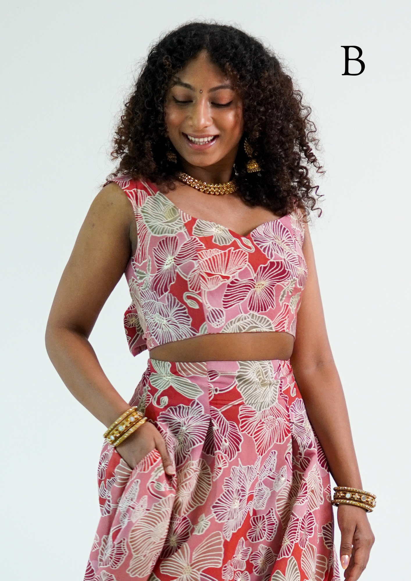 The Kanisha Top is a bold yet elegant piece that perfectly blends comfort with style. Designed as a sleeveless, backless crop top, it features delicate strings and a statement ribbon tie at the back allowing you to adjust for the perfect fit while creating a chic detail that stands out. Crafted from airy, lightweight fabric, the Kanisha Top keeps you cool and confident through the festive season. Available in two beautiful prints, it’s a versatile piece that pairs effortlessly with skirts or pants for a modern Deepavali look.