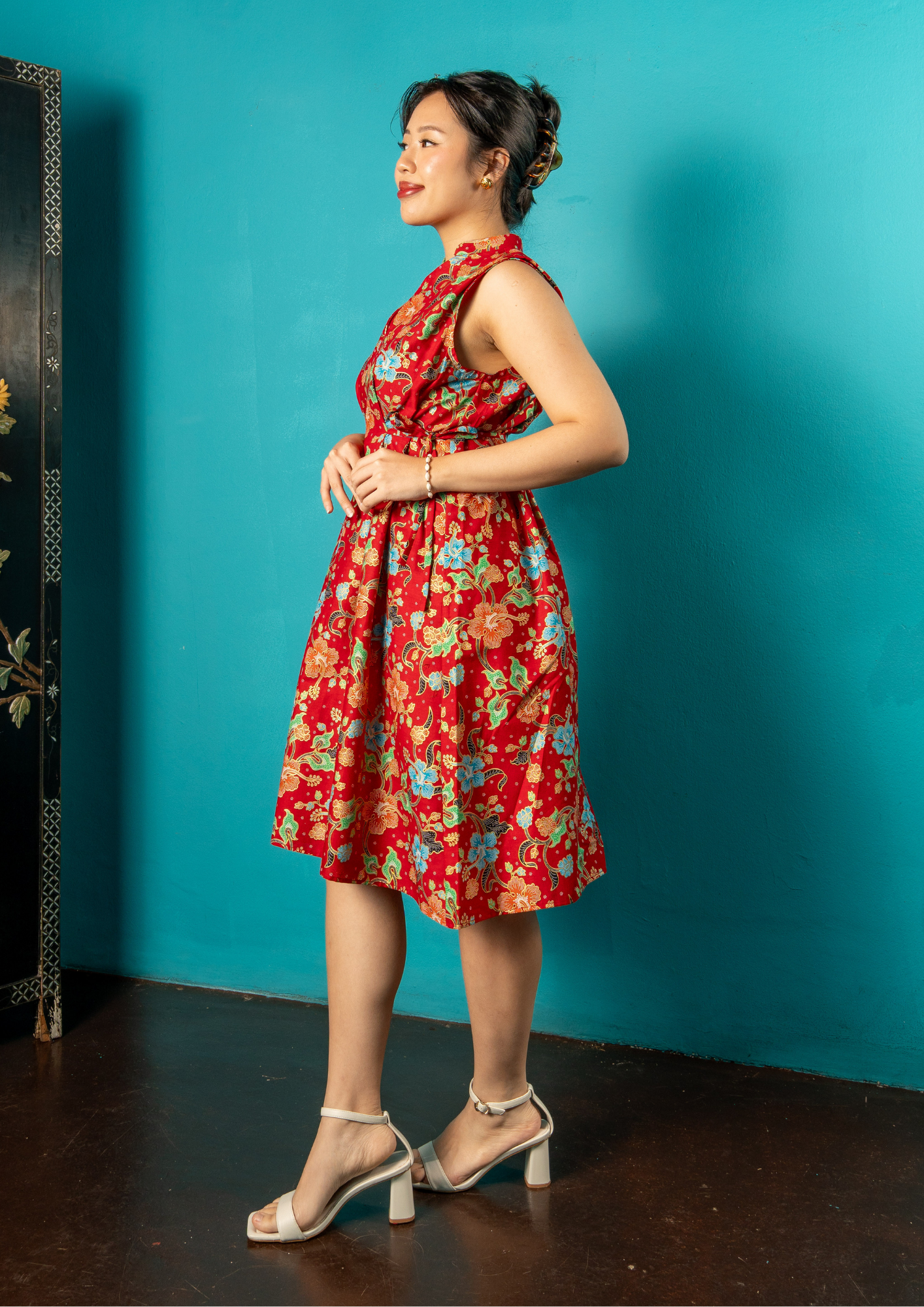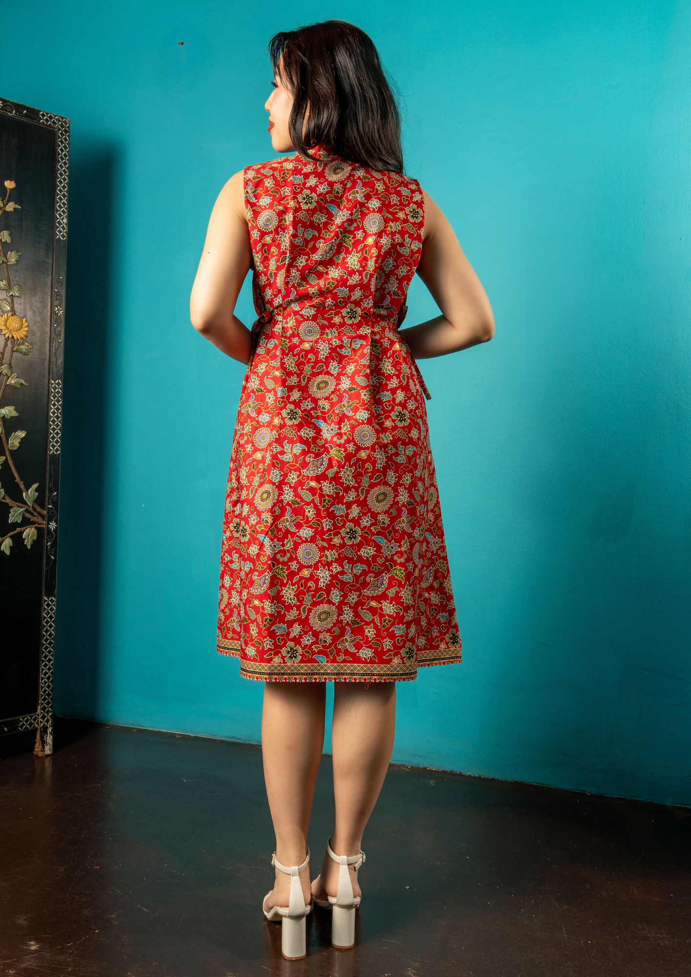 The Amy Dress is a sleeveless midi designed for all-day comfort and elegance. A hidden V-neck zipper and adjustable side ribbon let you customize your fit, while functional pockets add everyday practicality. Light, airy cotton makes it perfect for casual days, festive gatherings, and everything in between.