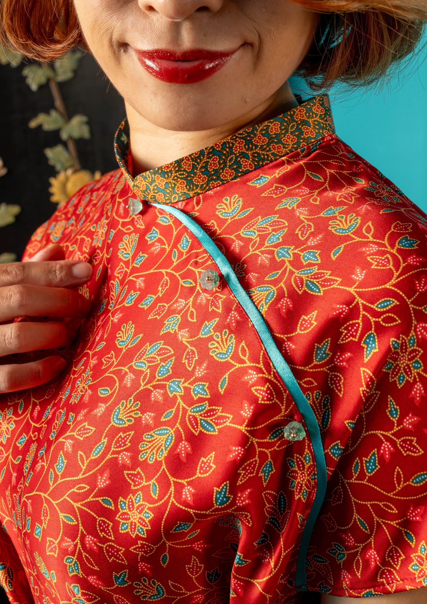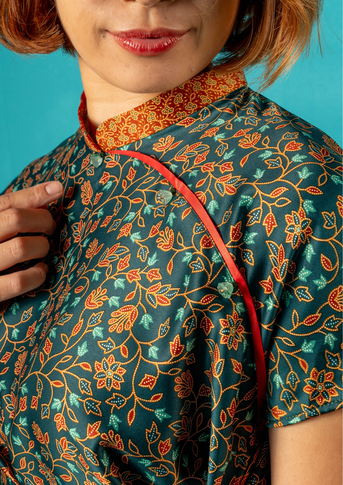The Mudan Dress features a classic mandarin collar with delicately piped buttons, paired with a sleek wrap silhouette that moves with ease. A waist ribbon allows you to cinch and contour comfortably, creating a soft, feminine shape. Whether for everyday strolls or meaningful celebrations, it’s a graceful choice that feels effortlessly polished.