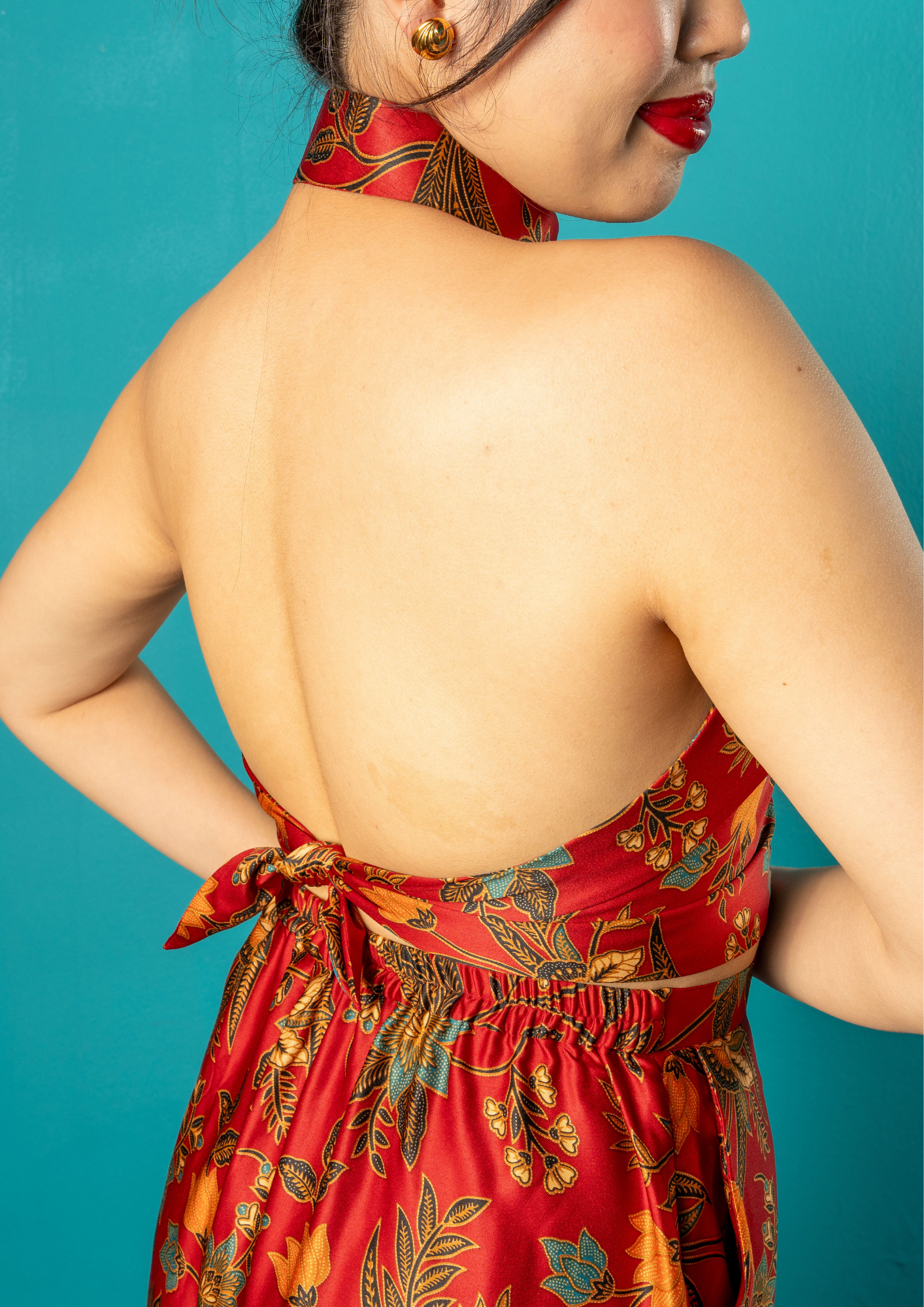 Crafted from soft satin, the Carmen Top features a structured front with a mandarin collar — a subtle nod to tradition — balanced by an open, adjustable tie-back that flatters effortlessly. Elegant yet modern, it’s designed to shape, drape, and shine in every setting. Available in three captivating colours.