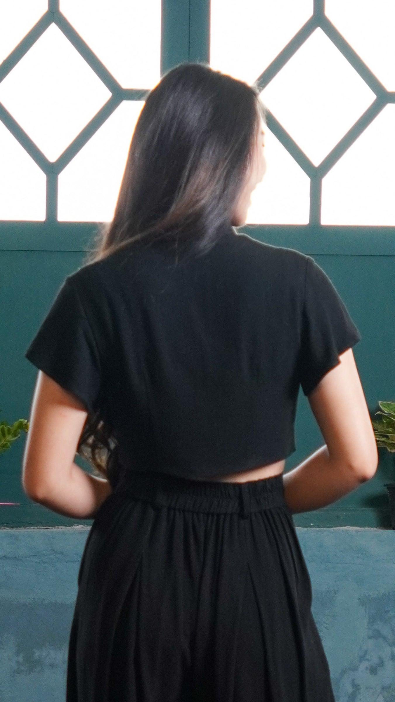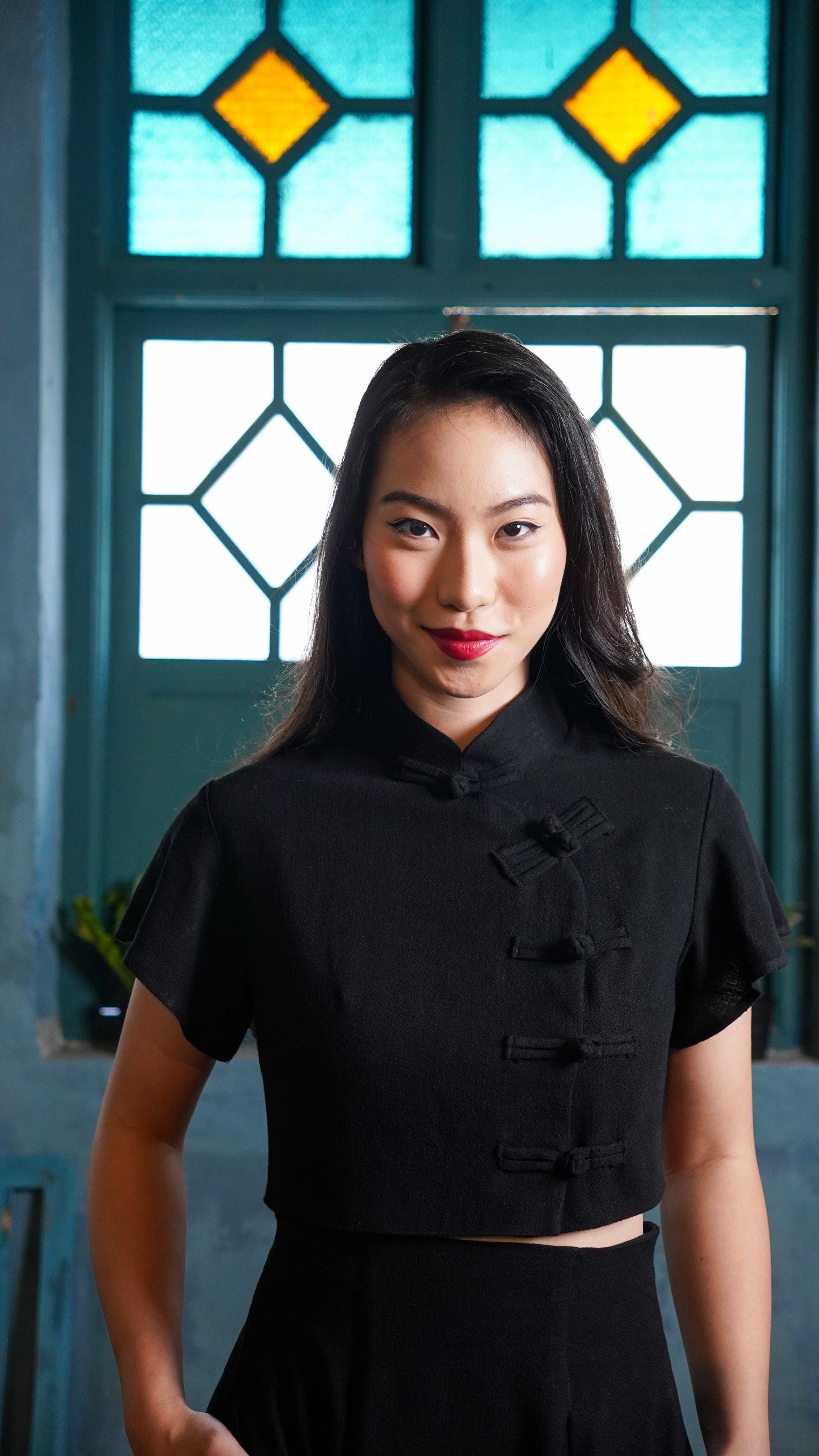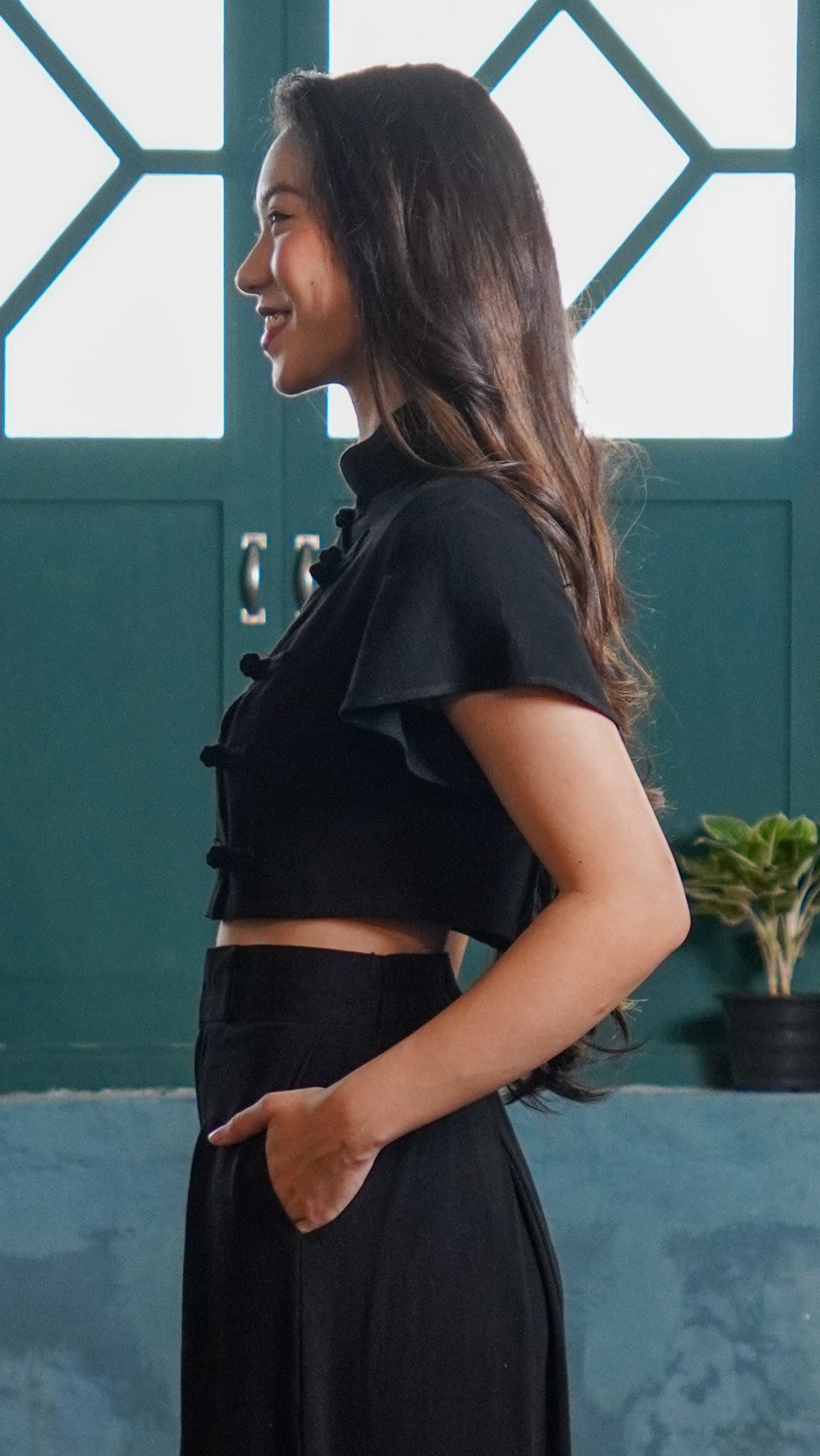 The Petal Top is a cropped design crafted from breathable cotton-linen, made to keep you cool and comfortable all day long. Featuring a graceful mandarin collar and traditional Chinese buttons, it blends classic details with a modern fit.